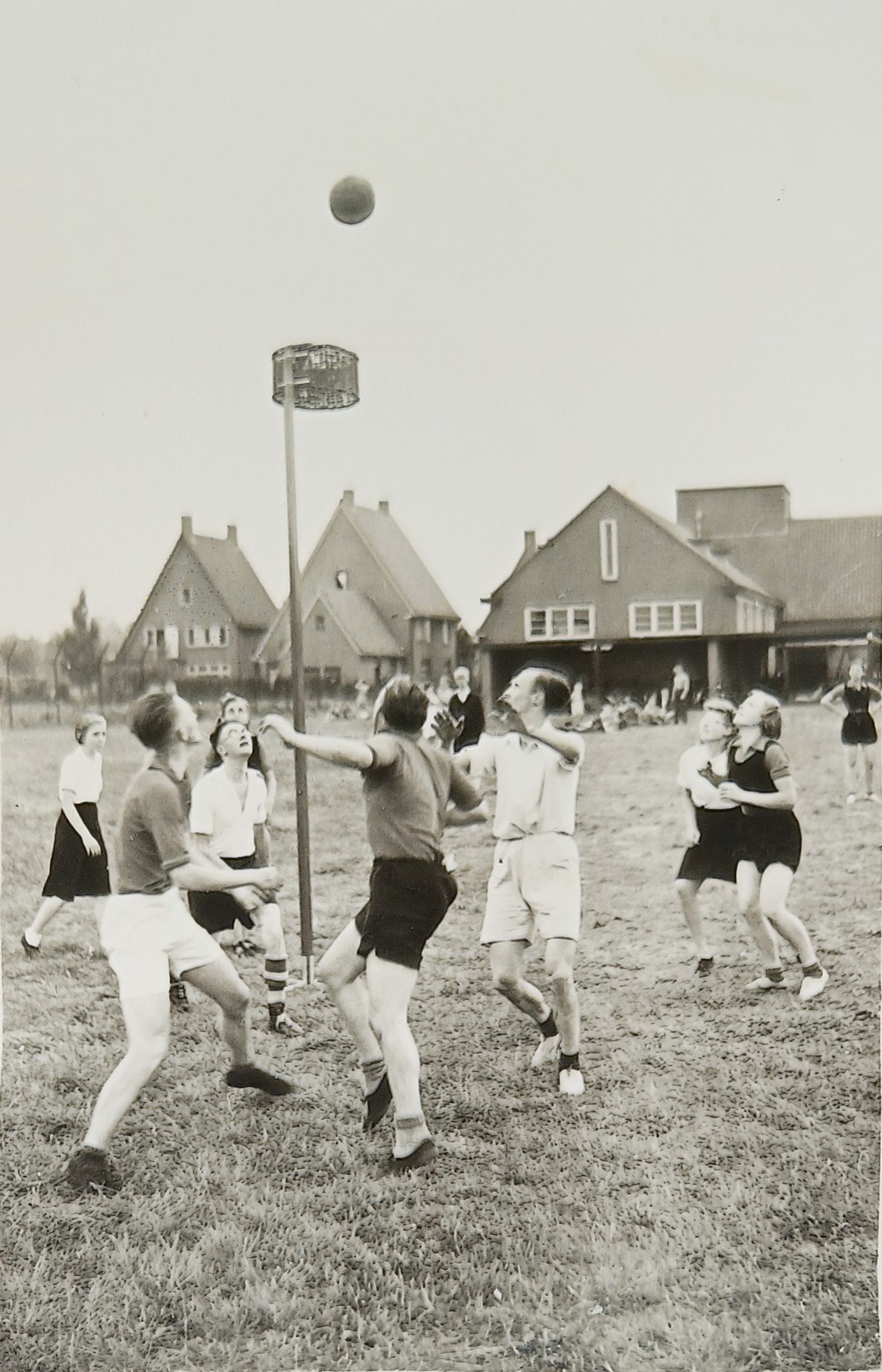 Wedstrijd in de jaren 40. Op de achtergrond zie je de achterkant van de Hervormde School.
